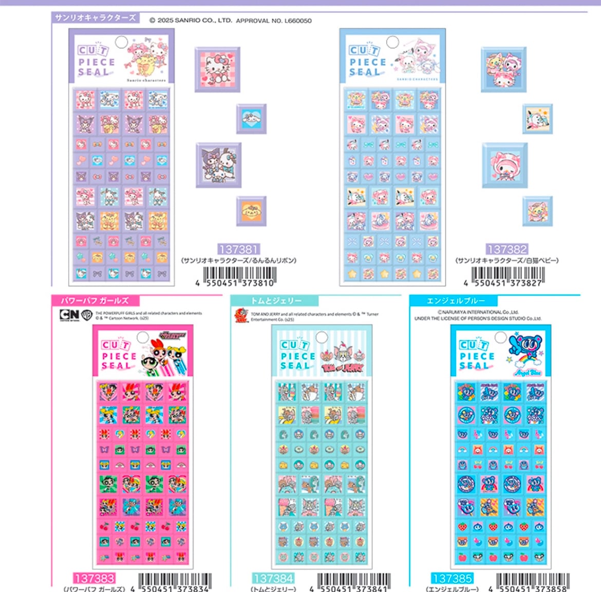 ・サンリオ るんるんリボン ・サンリオ 白猫ベビー ・パワパフガールズ ・トムとジェリー ・エンジェルブルー こちらは予約商品です。 メーカーから1〜2月ごろ入荷予定ですが、稀に 入荷時期が伸びる場合もございますのでご了承下さい。 ※全国的に深刻なシールの品薄状況が続いておりまれにメーカー様から欠品のご連絡がありご用意が出来ない場合があります。