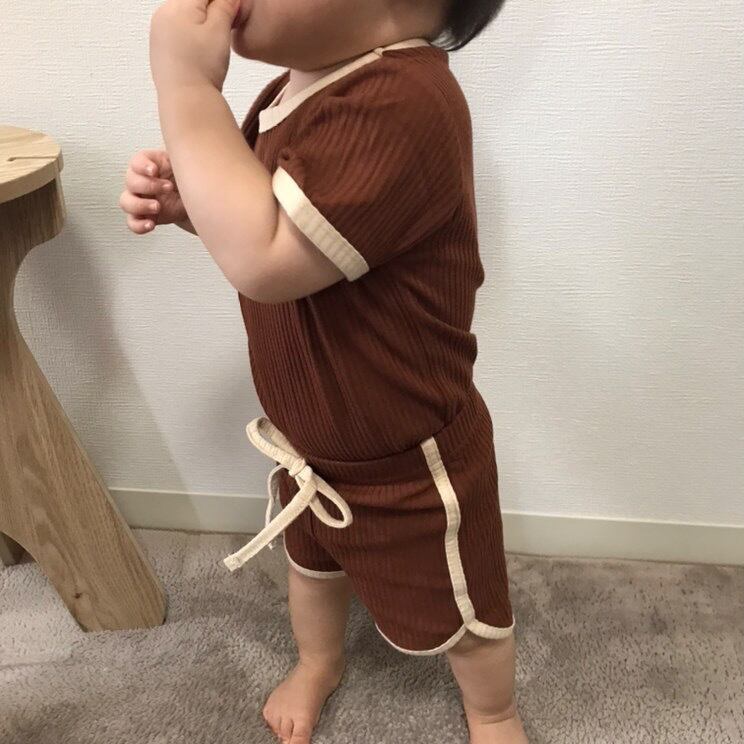 ロンパースとボトムスを別のお洋服でも合わせられるので万能なアイテムです♡