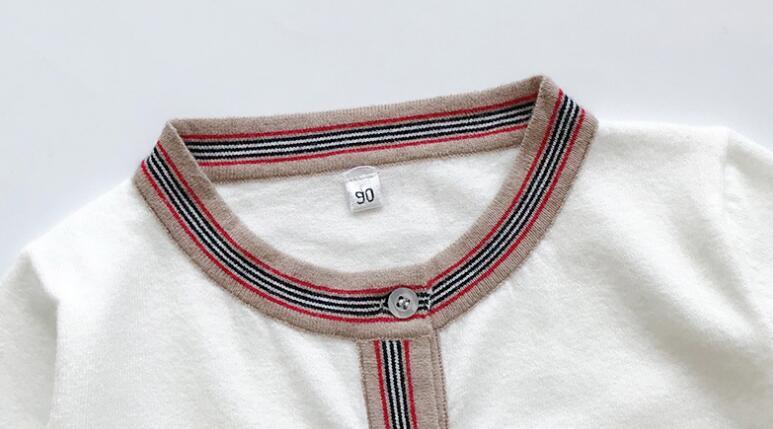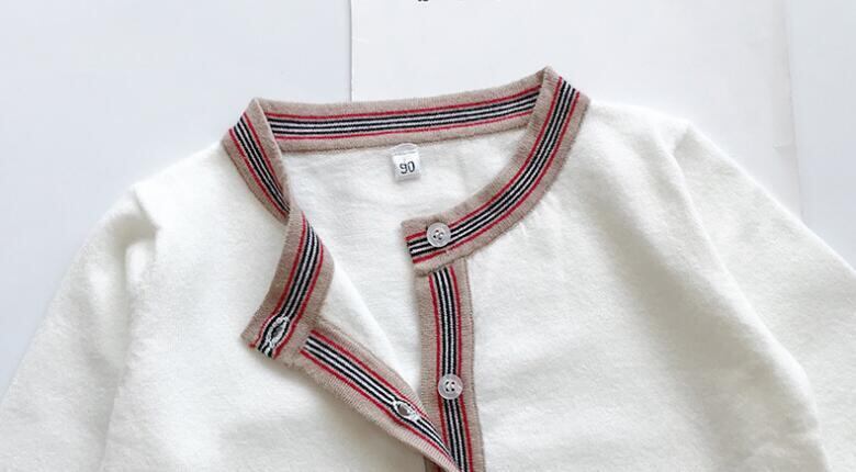 シンプルなデザインでワンポイントでストライプのデザインがお洒落な男女で使えるアイテムです♡ ワンピースに羽織ったり、ボトムスに合わせても◎ 【カラー】 ・ホワイト 【サイズ】 ・80cm ・90cm ・100cm ★ご購入のさいはbebe styleのお知らせをご確認の上、ご購入下さい 尚、ラッピングは無料でさせて頂きます!