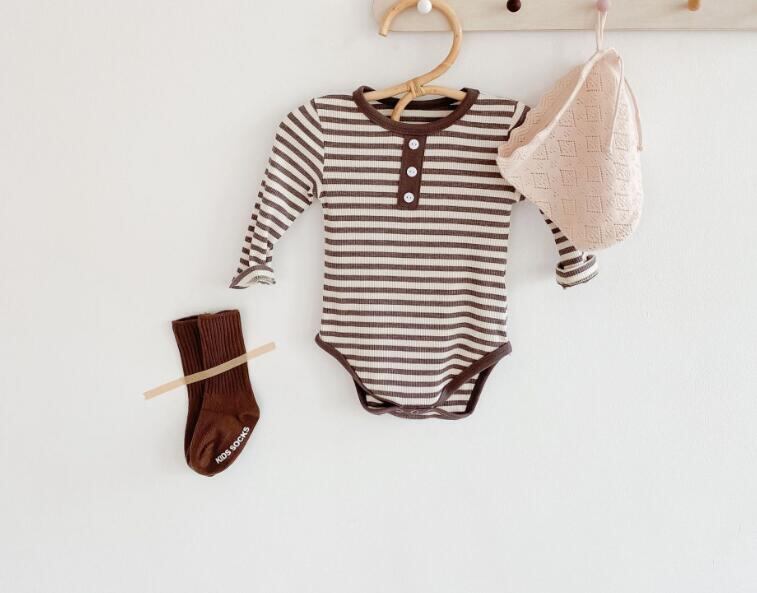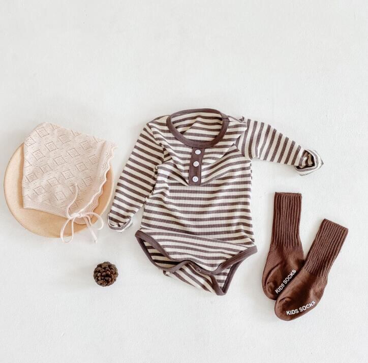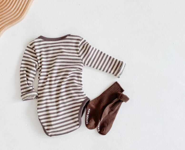 【即納】コットンボーダーロンパース