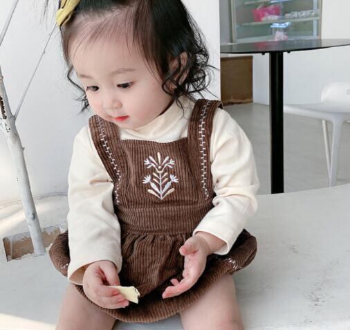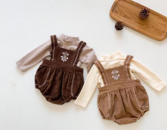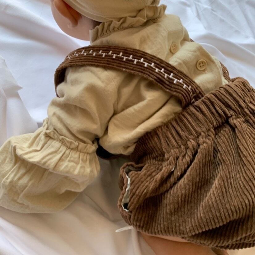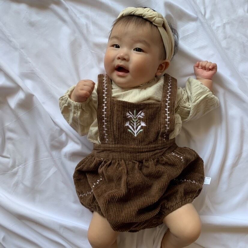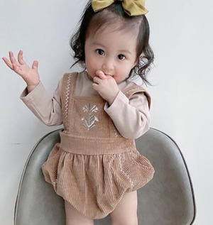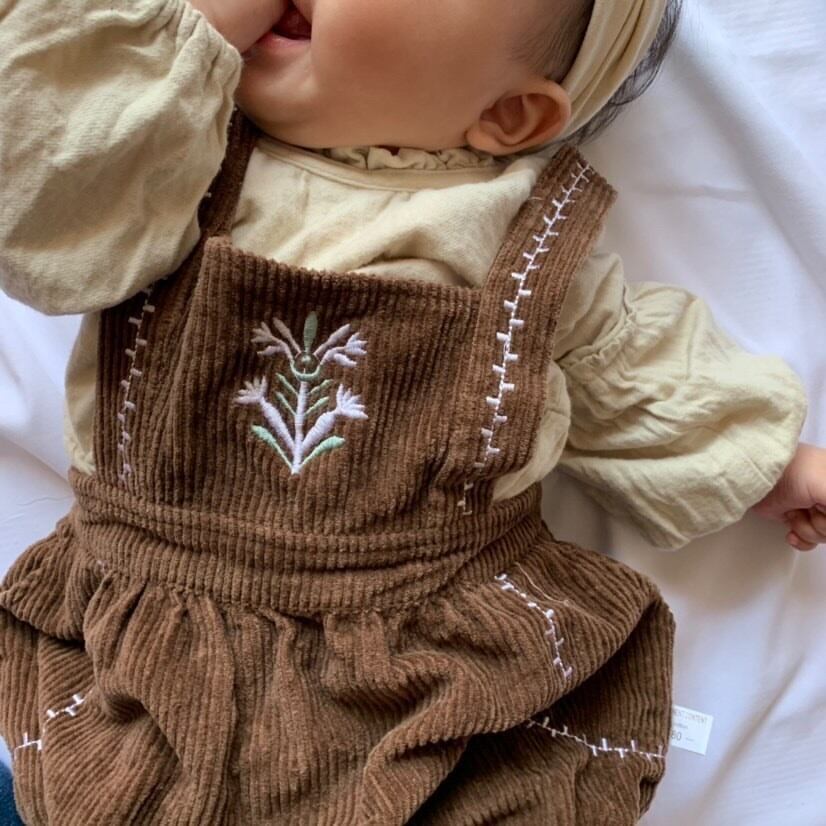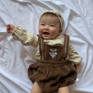 【即納】コーデュロイ刺繍ロンパース