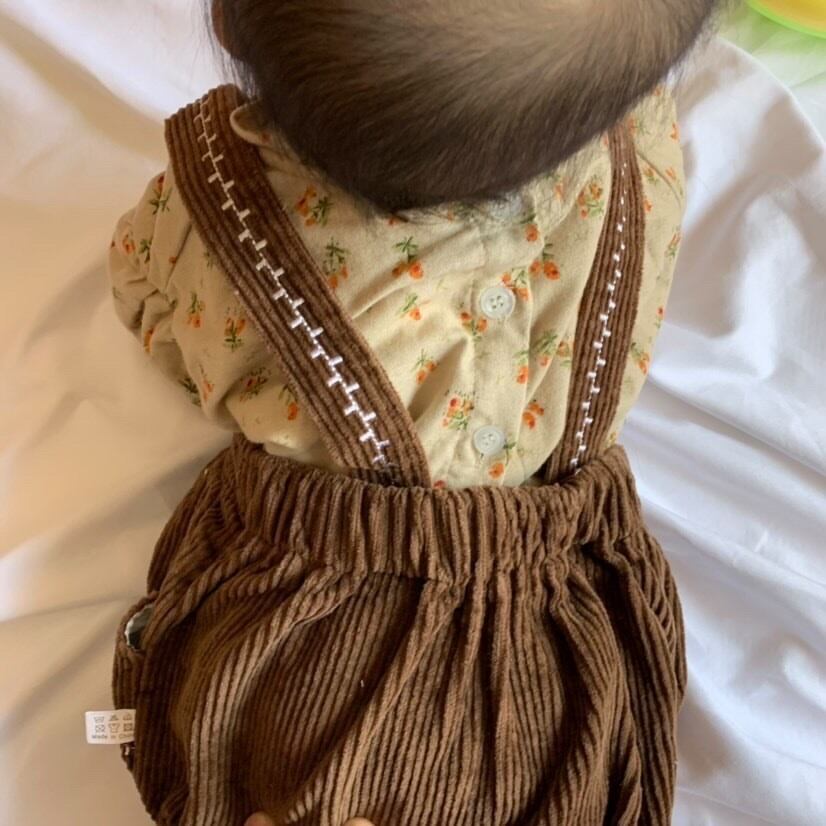コーデュロイ生地ロンパースは珍しく秋冬にぴったりなアイテムです♪